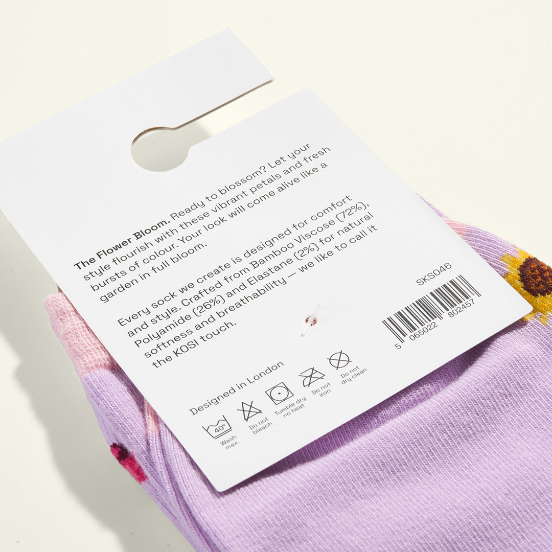 Every sock we create is designed for comfort and style. Crafted from Bamboo Viscose (72%), Polyamide (26%) and Elastane (2%) for natural softness and breathability — we like to call it the KOSI touch.